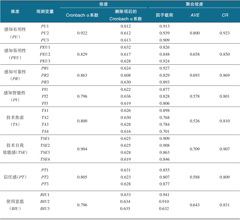 表3 信度及聚合效度分析