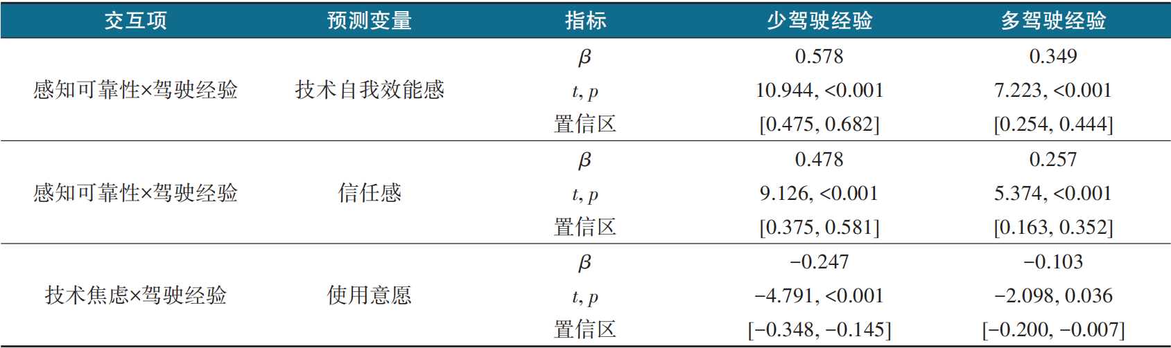 表8 驾驶经验在感知可靠性模型中的调节作用