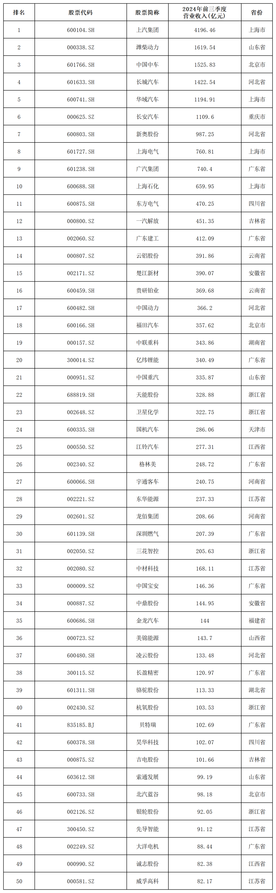 中国氢能相关上市公司TOP50