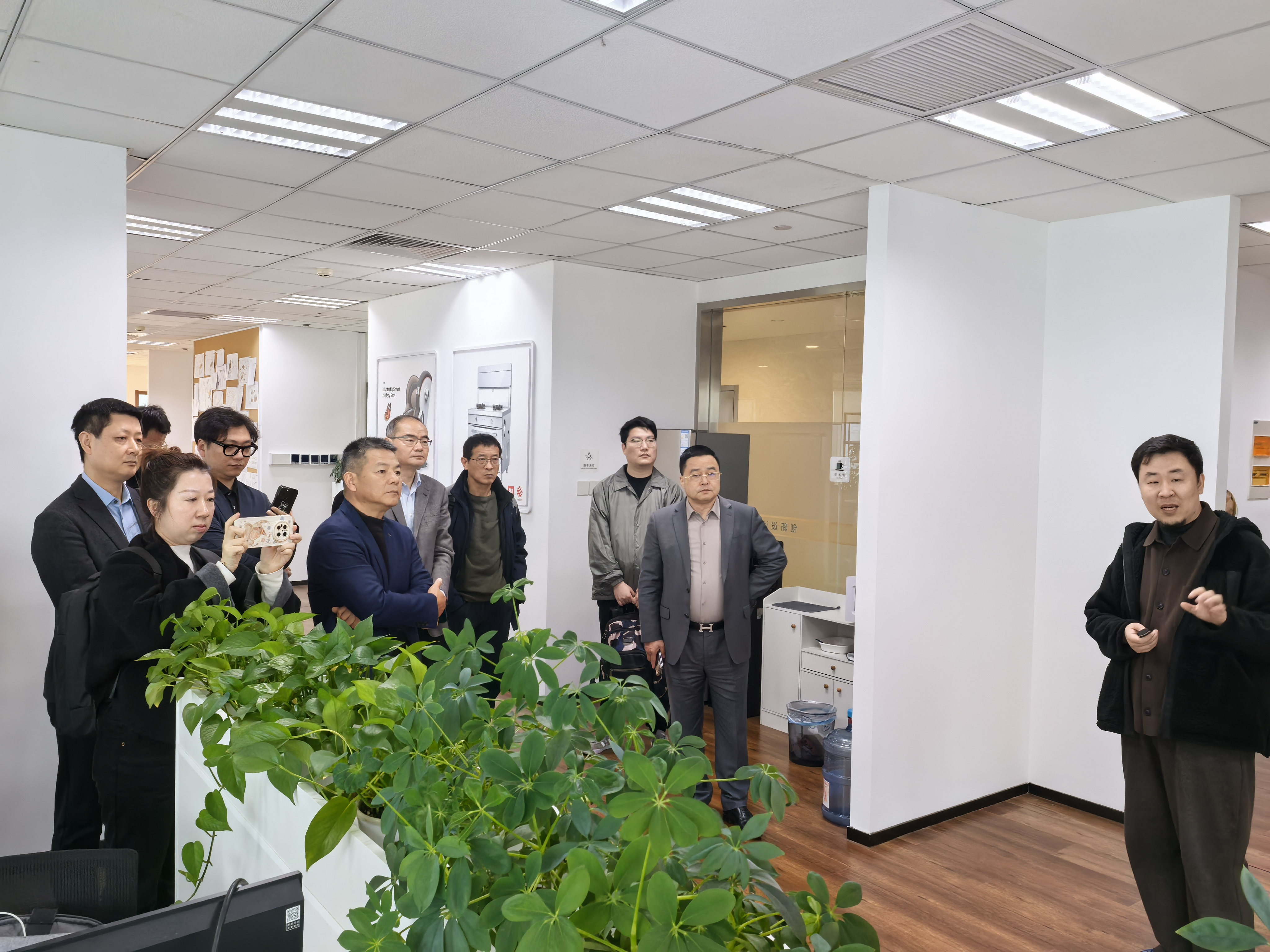 团组第一站来到浙江工业大学·慈溪创新设计研究院,实地参观科研环境及创新成果。研究院借助浙工大在工业设计领域的跨学科优势,以“两主两副”(即“两主”创意品类孵化、标准模块创制;“两副”院企共建研发中心设计人才实训)四大功能为定位,可为企业提供高能级、基石型创新设计服务。