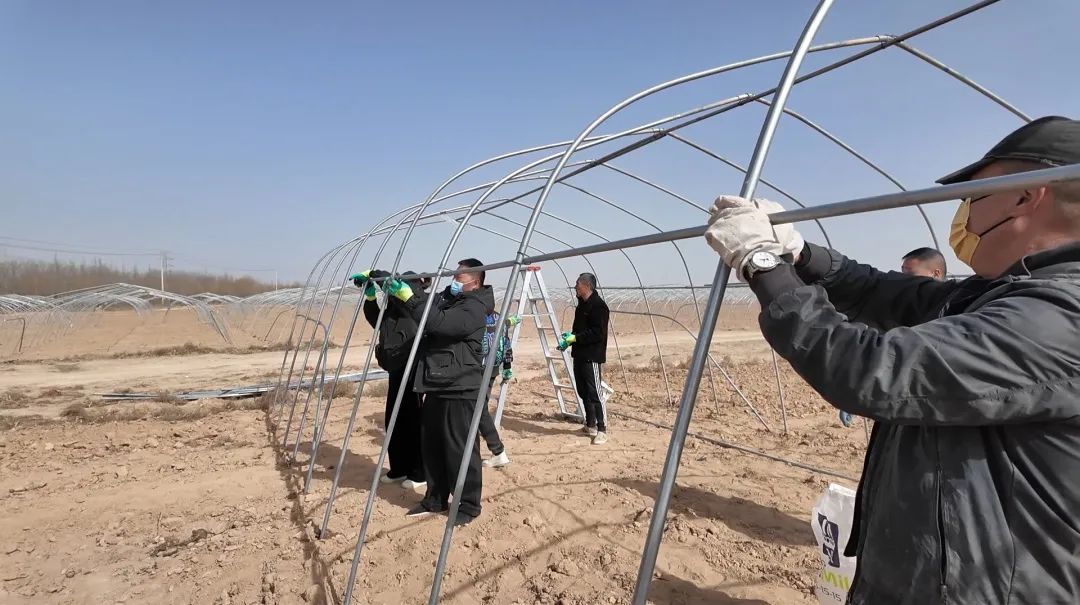 阿拉善盟孪井滩生态移民示范区(以下简称“示范区”)将产业培育与转型升级作为调整农业产业结构、增加农民收入的关键举措,依托当地优势,聚力发展冷棚麒麟西瓜种植。瓜农利用晴好天气加紧搭建冷棚,为即将到来的西瓜种植做足准备,让冷室大棚切实成为带动示范区农民增收致富的“聚宝棚”。