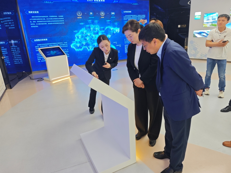 调研组实地参观了山东科技大市场各展陈区和业态服务区,详细了解山东省在科技创新、战略科技和体制机制等方面的发展历程以及在新一代信息技术等七个领域的一系列前沿科技成果,现场感受集成果展示、人才引育、成果交易、政策服务、供需对接、金融赋能、综合服务、项目孵化等多功能于一体的实体化市场平台。工作人员重点介绍了大市场在整合科技资源、促进产学研合作、加速科技成果转化等方面的成功案例,为济阳区优化科技服务提供了有益借鉴。
