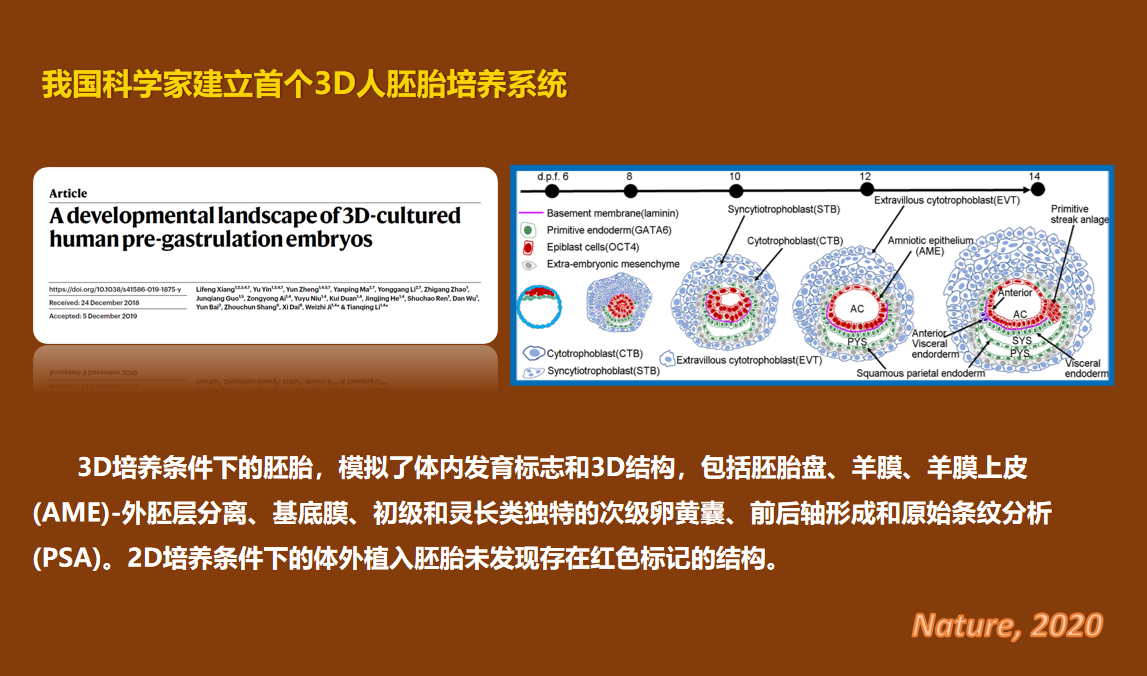 胚胎体外培养技术的出现,为原肠运动研究提供了契机。“上述提到的人胚胎三维培养系统,高度模拟了人胚胎体内发育的过程,这让我们能初步窥探原肠运动的奥秘,14天前胚胎研究目前已在科学问题上取得了重大的进展。”季院士感慨,为遵循“14天规则”,上述实验在体外培养受精后人胚胎的第14天停止,许多科学问题尚未解决。