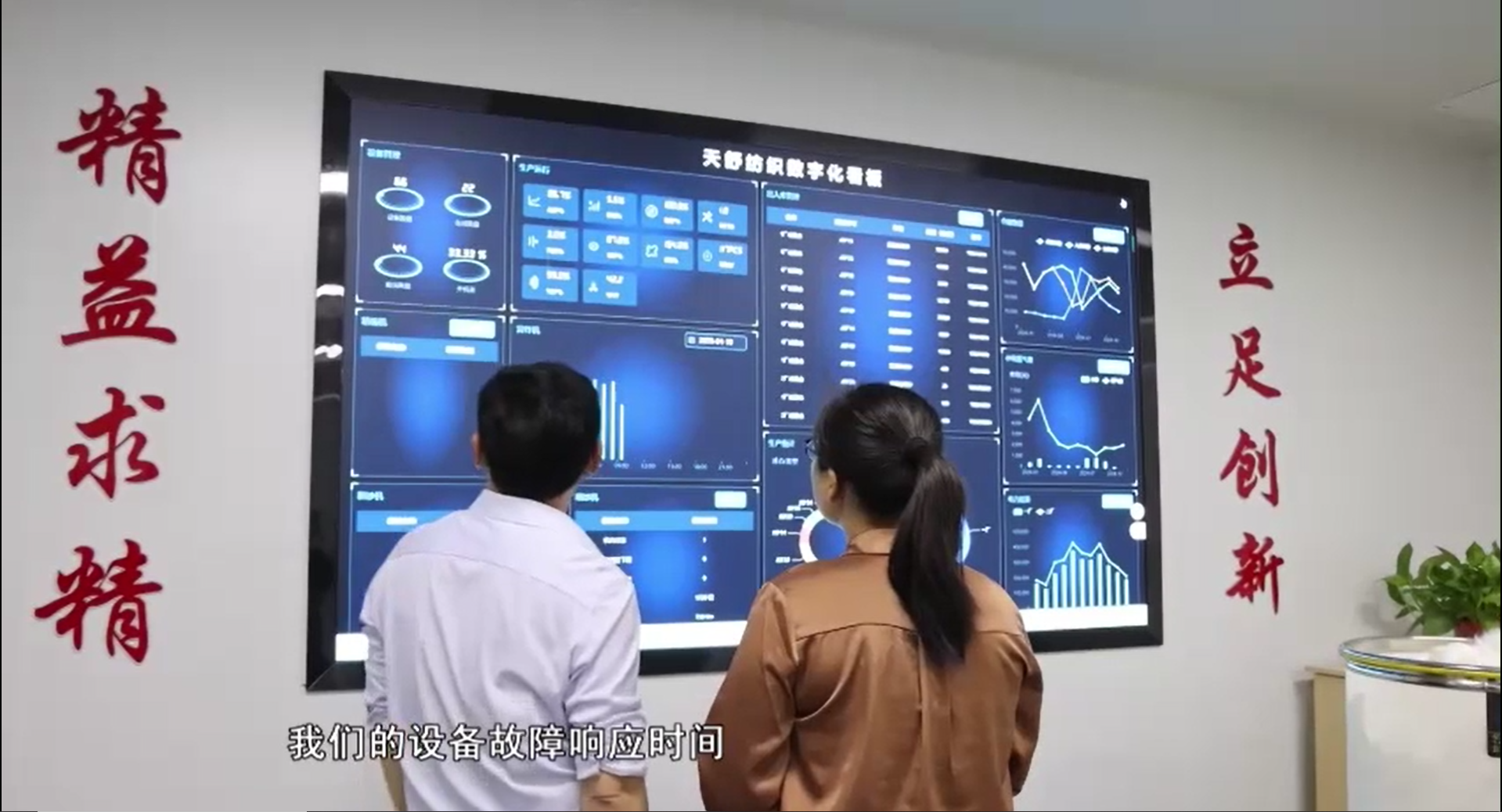 天舒纺织的这一变化,源于2024年9月完成的“云、管、端”一体化5G智慧工厂建设,给每台纺织机都装上“智慧大脑”,借助“5G数据看板”“5G AI质检”等应用场景,这家老牌纺织企业尝到甜头:设备故障响应时间缩短至5分钟,生产效率提高15%,良品率提升25%,运营成本下降10%。