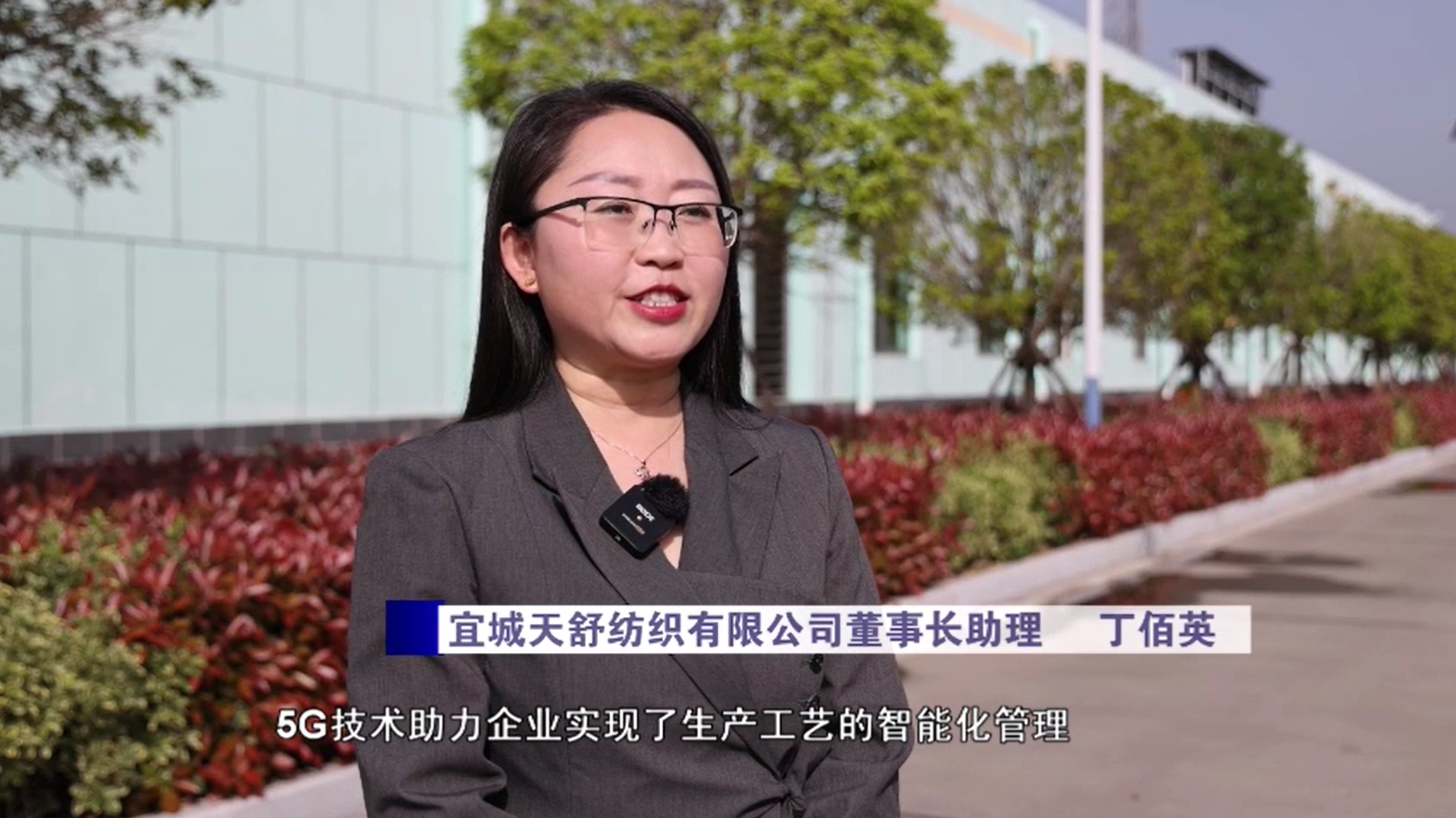 “5G助力智能化管理,每台机器都能根据订单需求和生产情况自动调整参数,实现精准生产。”天舒纺织董事长助理丁佰英说。