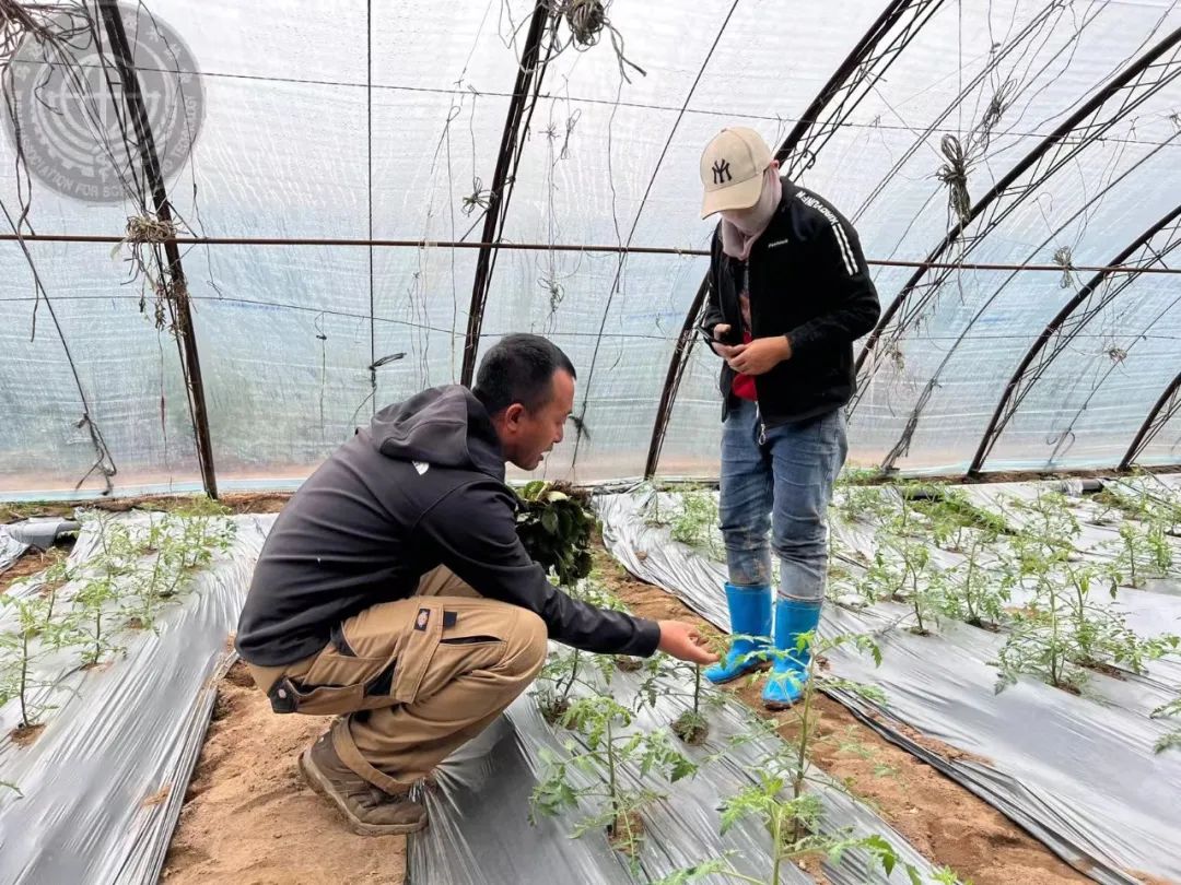 “李教授,您的手这是怎么了”,李正男教授一下车,郭永胜就投来关切的目光,“这是和学生在试验田做实验时不小心摔的”李教授扬了扬打着石膏的手不好意思的说道。“之前小院白粉病、灰霉病闹的最厉害的那段时间,李教授拄着拐都来帮我们看,在果树修剪、病虫害防治上都给我们关键的技术指导”郭永胜表示,正是通过科技小院这个平台,才能邀请到内蒙古农业大学教授和农技专家实地指导,为品种选择、病虫害防控、日常栽培管理方面提供大量技术支持。