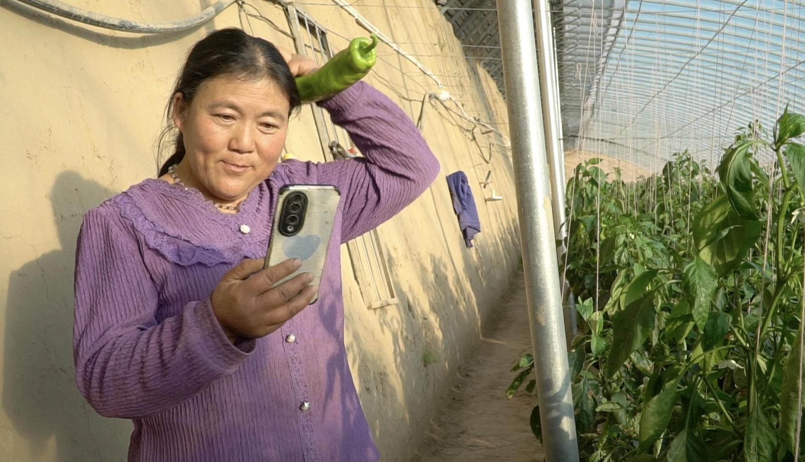 李文香:前几年因为辣椒卖不出去抹眼泪的时候,哪想到今天还能拿着手机跟天南海北的“家人们”唠嗑呢?