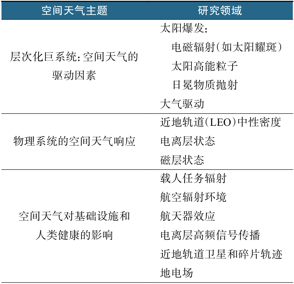 表3 2024太阳和空间物理十年调查中的空间天气主题及研究领域