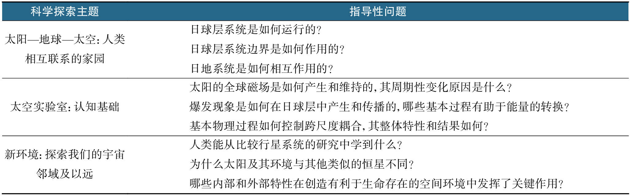 表2 2024太阳和空间物理十年调查科学探索主题及其指导性问题