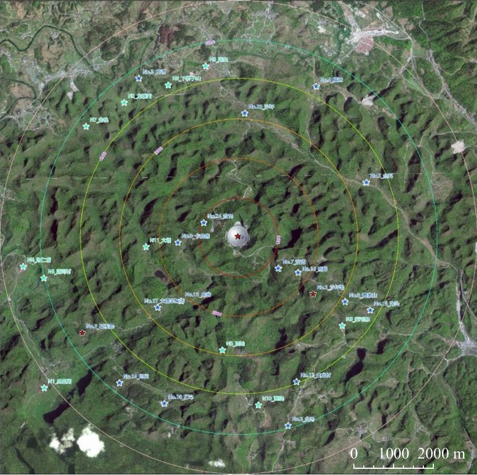 贵州省黔南州FAST周边30 km范围内,即FAST电磁波环境保护区。在此区域建设阵列望远镜既不影响地方经济发展,又能充分利用优良的台址环境,还能发挥FAST的灵敏度优势,可谓一举三得。