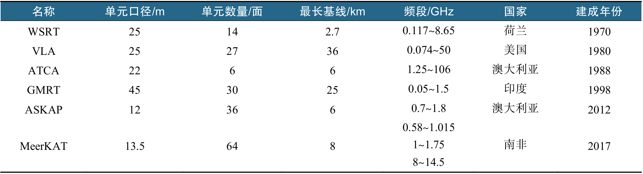 表1 世界上主要综合口径射电厘米波干涉阵列