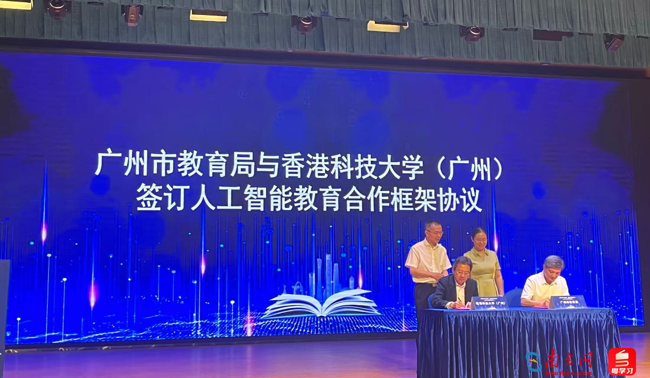 活动现场,广州市教育局与香港科技大学(广州)签订人工智能教育合作框架协议,并促成广州11区学校与科大讯飞、视源股份等人工智能企业达成结对合作,未来将围绕广州市学校人工智能与教育融合创新的发展需求,充分整合发挥各方优势资源,构建“人工智能+”教育新形态。