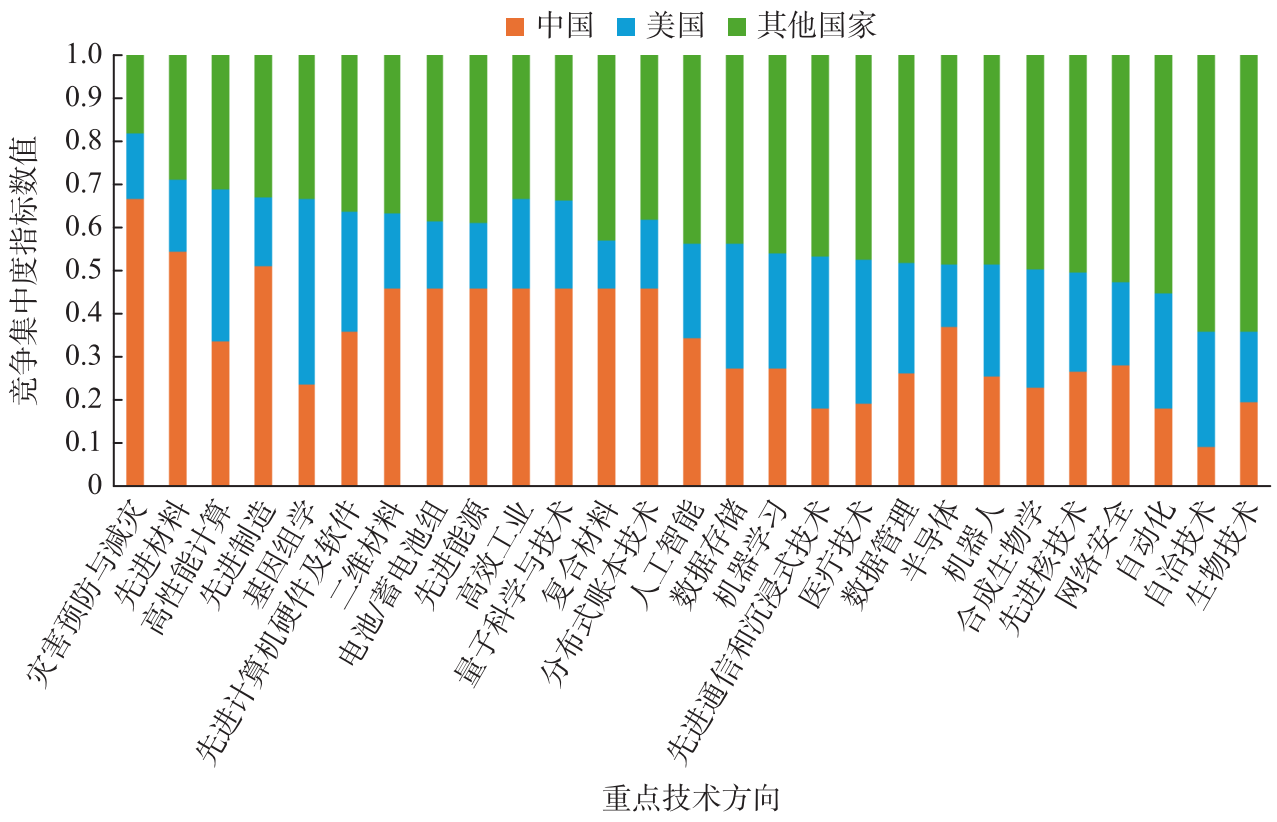 图3 全球关键技术领域基础研究竞争集中度分析(2021年)