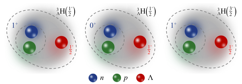 复旦大学的研究人员开展了重离子碰撞中(反)超氚核的整体极化效应的理论研究,研究提出可以用实验测量的超氚核的整体极化效应提取超氚的自旋内部结构以及在重离子碰撞中的极化产生机制。该研究率先从理论上将超核极化效应拓展至超核系统,认为重离子碰撞中产生的核子和超子通过自旋相关的并合机制形成超核时,超核的极化度将直接依赖于核子和超子的自旋极化度以及超核波函数的自旋结构。