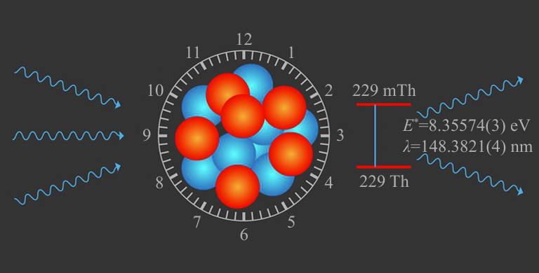 任何可靠产生的周期现象——从钟摆的摆动到单个原子的振动——都可以作为钟表的基础。如今,最精确的计时依赖于原子中极窄的电子跃迁,这些跃迁在光学频率上共振。利用激光光源从核基态激发其共振跃迁——这是控制操作核钟并过渡到“激光主导”的核钟研究时代所必需的步骤——在几十年里始终无法实现。2024年,研究人员实现了用紫外光激发这一跃迁的长期目标。德国计量国家研究所(PTB)和维也纳工业大学的研究人员,使用自主设计的激光激发了钍同分异构体229mTh,并以前所未有的精度测量了其跃迁能量和波长,为实现核钟打开了大门(图31)。