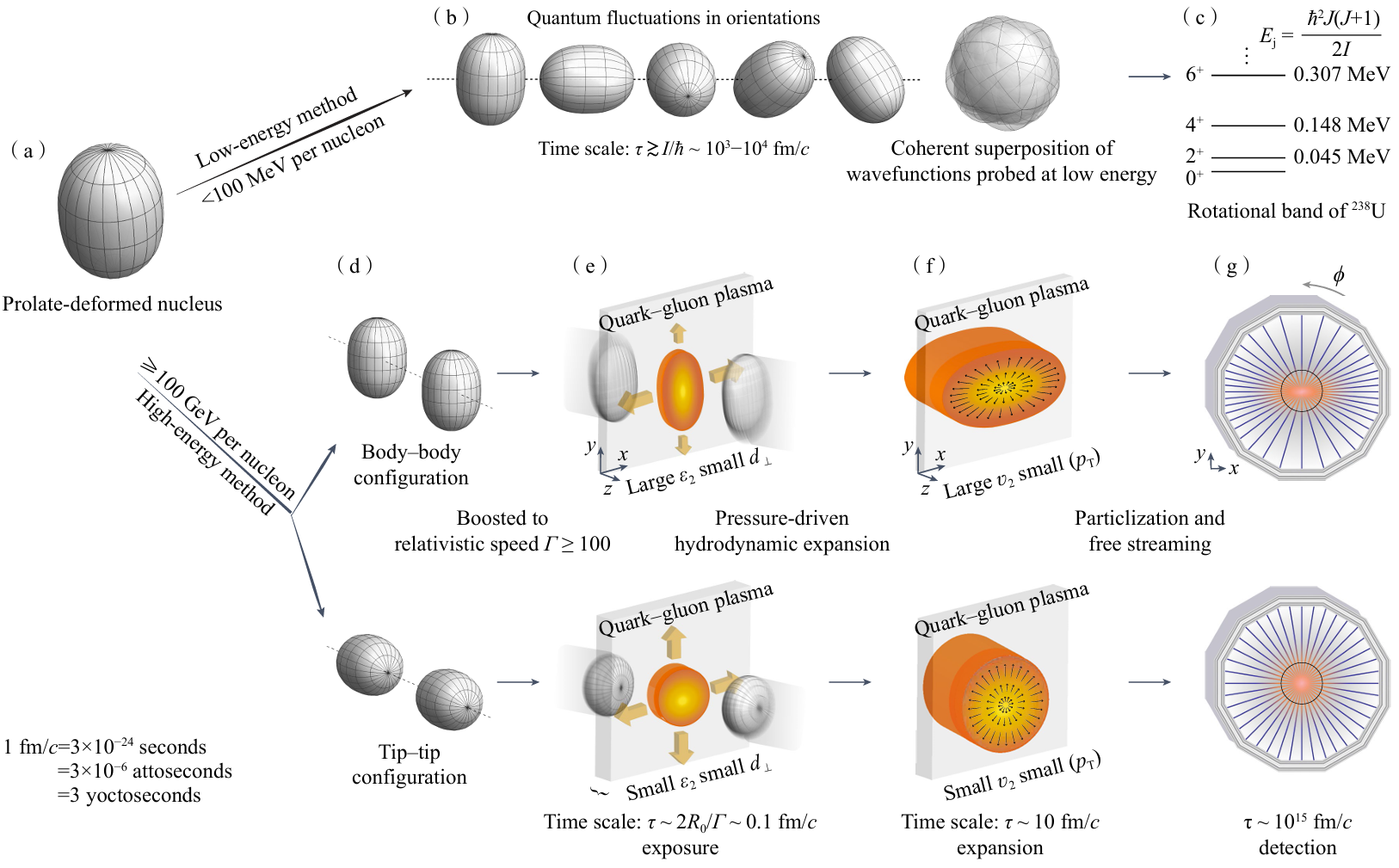 图24 低能测量和高能重离子碰撞研究原子核结构方法示意