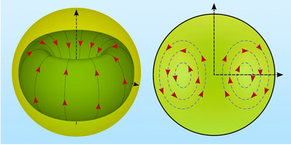 另一方面,具有奇特结构的原子核,其激发态也可能伴随着各种集体运动模式,除了比较熟知的质子中子间相对运动形成的巨偶极共振,还有许多其他可能的模式,其中包括环形偶极共振(toroidal dipole mode,TDR)。环形偶极共振在50年前就已被预测,它涉及质子和中子沿着形成核内环形体的嵌套环路振荡(图7)。但这种共振至今尚未被明确检测到。
