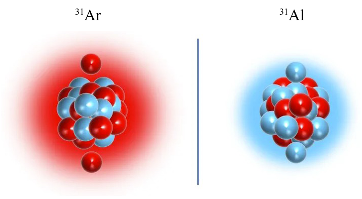 图12 镜像核31Ar(左)和31Al(右)的核子分布想象