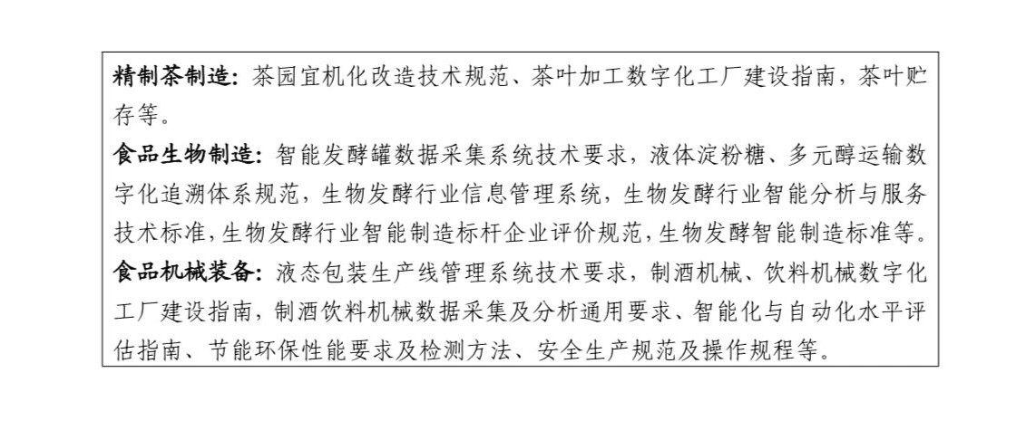 13.建立健全标准体系。推进食品工业数字化转型基础架构、技术应用、分级分类、实施指南、测试评价、互联互通,以及数据管理、数据质量、产品主数据等关键急需标准制修订,完善相关标准及细分领域系统运维、设备维护等服务规范,推动智能制造标准体系建设。支持行业组织牵头制定团体标准,加快国标、行标、团标协调配套,鼓励制定高于国标、行标的企业标准。开展标准宣贯,推动国标、行标进企业、进园区、进集群。深化与国际标准化组织合作,加强国际标准采标研判,推进标准外文版计划。