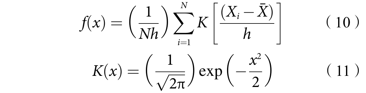 Kernel估计(Kernel density estimation)作为一种非参数估计方法,能够对样本数据进行拟合,用连续密度曲线描述研究对象属性值的分布位置、形态、延展性以及极化趋势,在应用过程中具有稳健性强和模型依赖性弱等优点,现已成为研究各地区发展非均衡分布问题的常规方法。假设随机变量X的密度函数为f(x),在点x的密度函数由式(10)进行估计。选择高斯核函数估计中美基础研究创新韧性的空间分布及动态演进,如式(11)所示