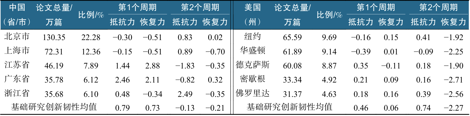 表2 中国和美国主要区域基础研究创新韧性比较