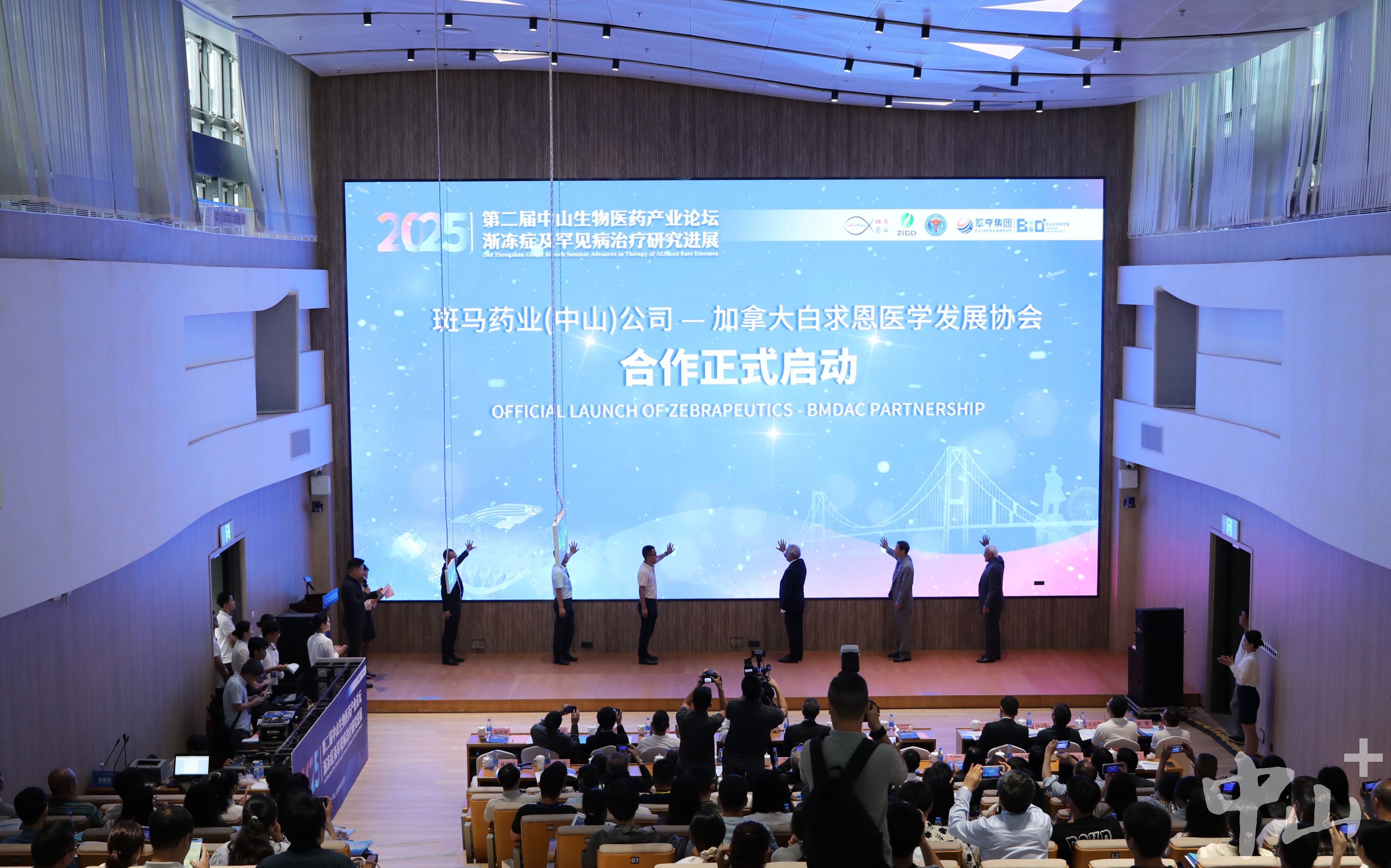5月16日,以“渐冻症及罕见病治疗研究进展”为主题的第二届中山生物医药产业论坛在中山翠亨新区国际科创中心开幕。本次论坛由斑马药业(中山)有限公司主办、中山生命科学园承办,汇聚了来自全球顶尖科研机构、高校及医疗行业的专家学者,共同探讨生物医药领域的前沿技术,推动国际合作与研究成果转化,为“世界五大绝症之首”的渐冻症及其他罕见病治疗带来新的希望。