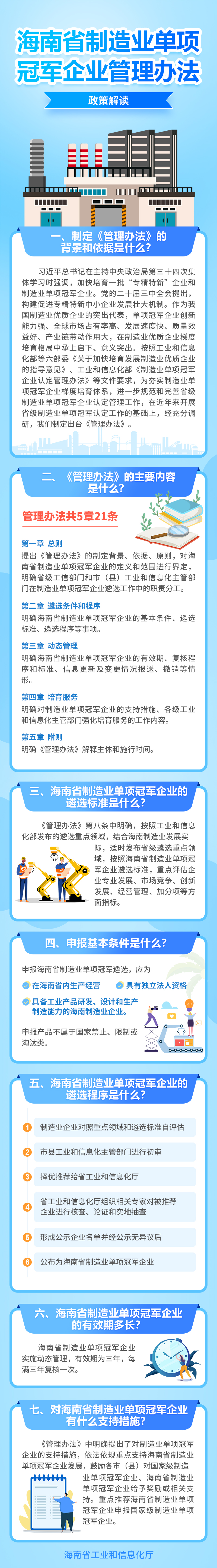 一图读懂:《海南省制造业单项冠军企业管理办法》