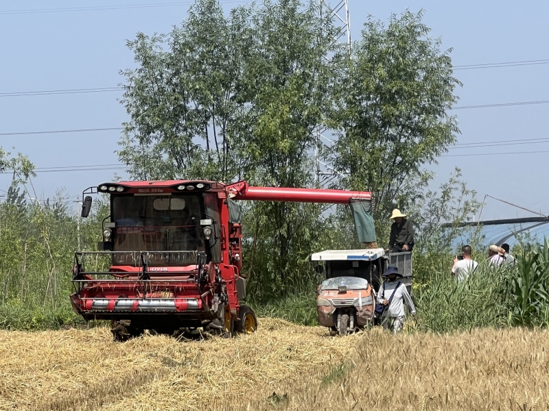 趁晴抢收,紧随小麦成熟时间快速调整麦收节奏。在大武口区长兴街道兴民村,麦浪滚滚,机声隆隆,农机手们凭借着精湛的操作技术,熟练地控制着收割机的行进速度,力求在完成收割任务的同时,最大限度地降低小麦机收损失率。