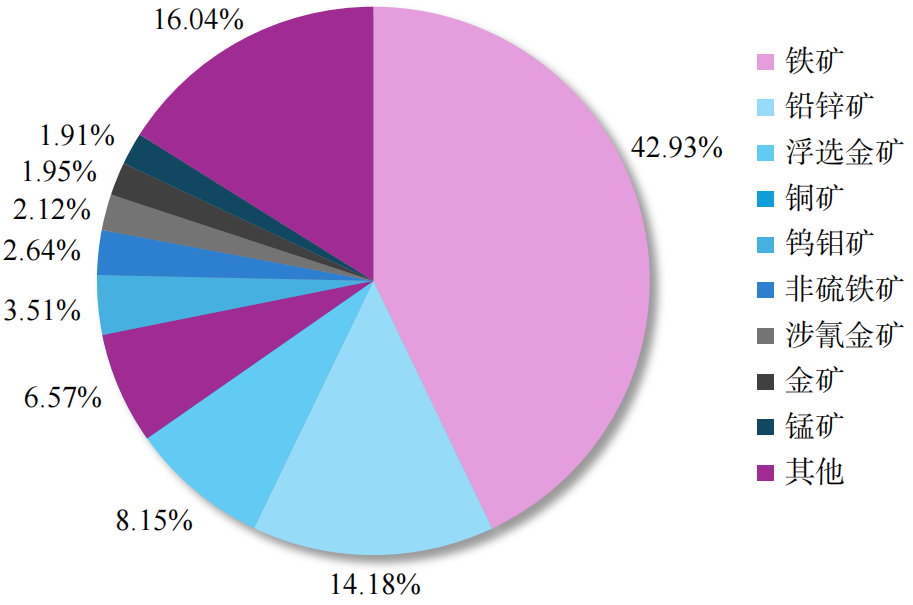 当前,中国纳入环境监管的尾矿主要包括黑色金属尾矿、有色金属尾矿、稀贵金属尾矿、非金属尾矿等,总占地面积可达110万hm2。