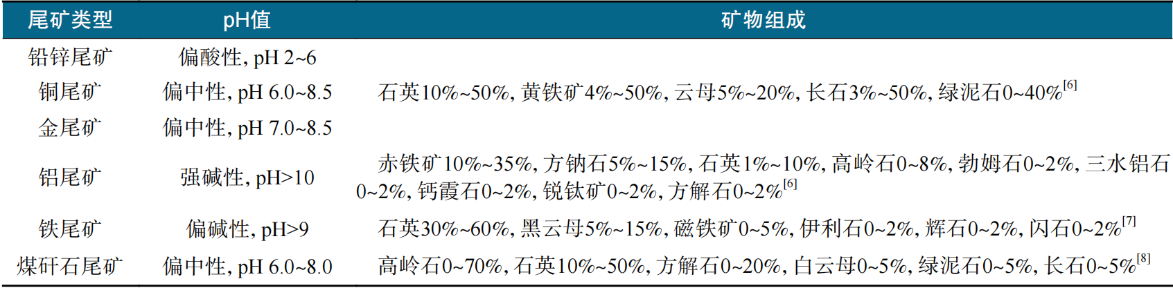 表1 不同类型尾矿的理化性质和矿物组成差异