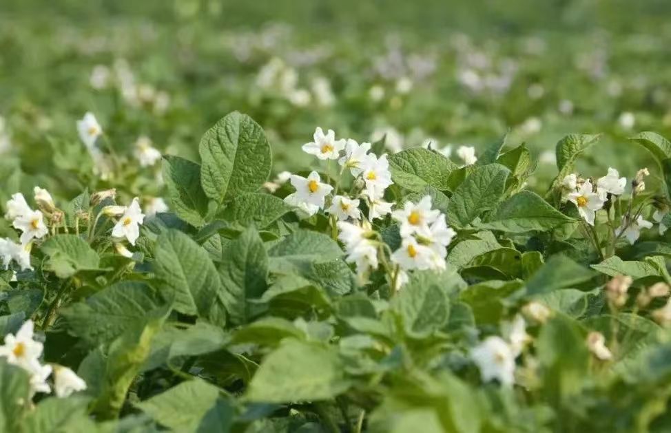 “今年我们针对鲜食、薯条加工、淀粉提取等不同需求,专门引进了多个品种试种,种肥同播,用腐殖酸肥和复合肥追肥,后期管护全程用无人机喷施,全程机械化作业效率特别高。”合作社负责人路克峰指着田间介绍道,“这些技术革新能让化肥减量10%,降低种植成本的同时,更让马铃薯品质在科学管护中稳步提升,预计亩产可突破5000斤。”