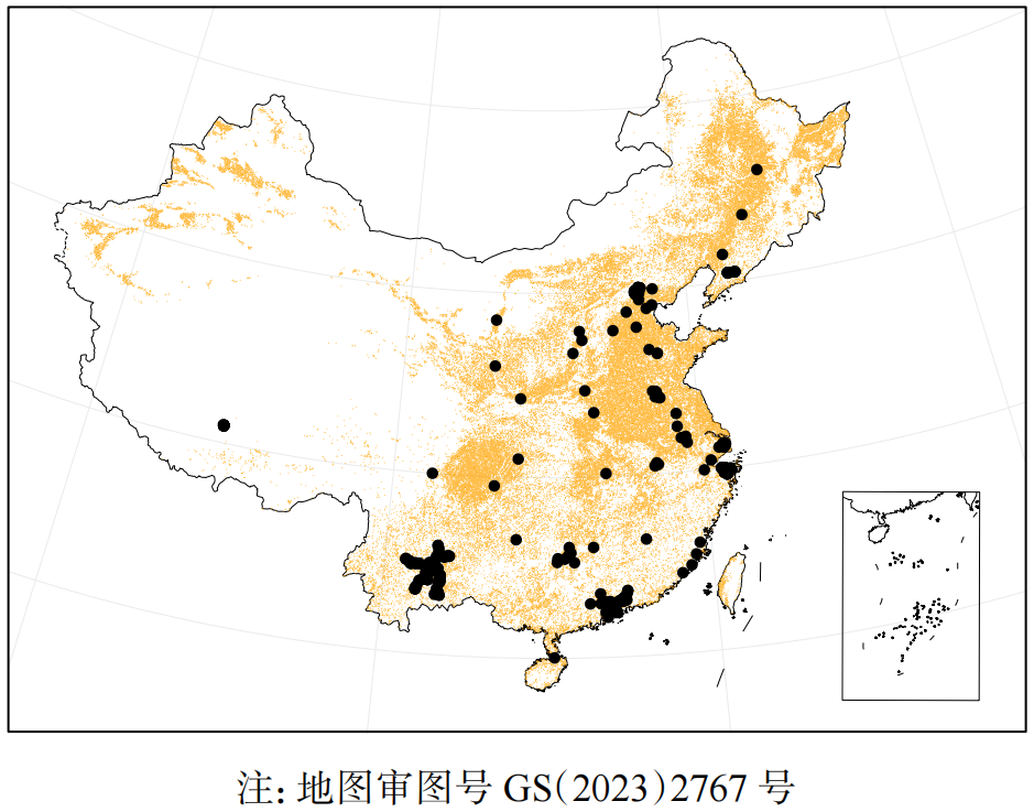 (4)删除采样时间不明确或未记录空间位置的样本。形成的数据库含484个有效样本,约为原始样本的92.7%,覆盖中国东部和中部主要农业区(图1)。