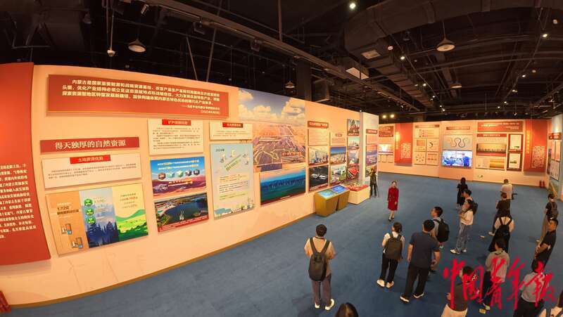 7月28日,在内蒙古展览馆,展出的2024年内蒙古实现“15个全国第一”的图片。中青报·中青网记者 张敏/摄