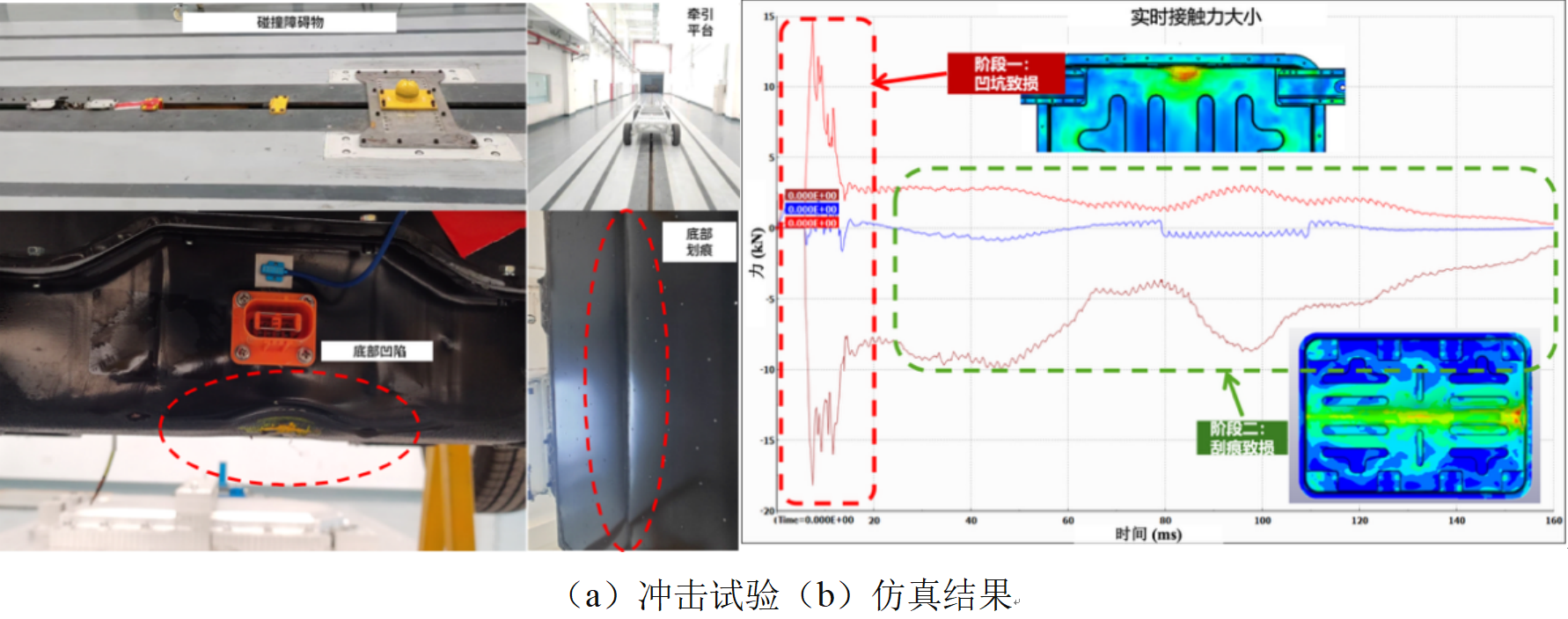 图2 模拟实车场景的底部正向冲击试验及仿真结果