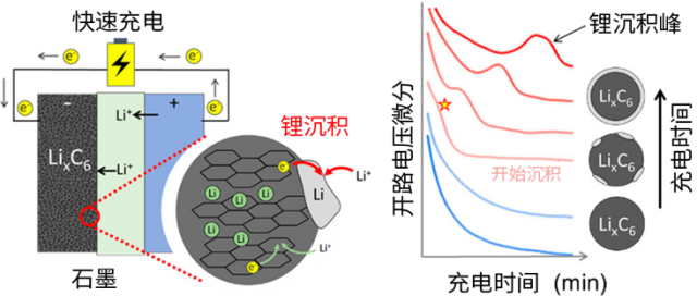 2.1 快速充电后安全评价 目前可支持快速充电的电池设计中,利用合理的电极结构设计与电解液优化实现锂离子的快速迁移。然而,当充电倍率超出电池设计能力时,会引发一系列不良后果,包括锂枝晶生长、正负极材料结构变化、电解液分解及副反应加剧等,伴随内部产气,严重影响电池性能和安全性;相应的,充电过程中的产热效应在上述副反应的作用下会进一步加剧,导致内阻增大,后续充电时产热量增加,从而提升电池热失控的风险。快速充电过程中锂沉积示意图如图1所示。