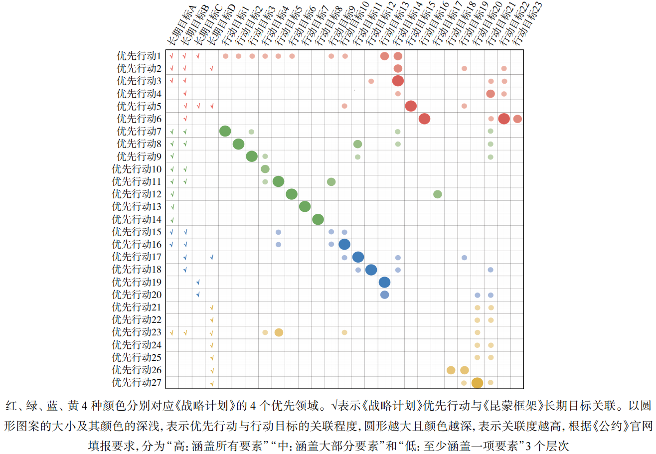 图2 《战略计划》中27个优先行动与《昆蒙框架》23个行动目标关联