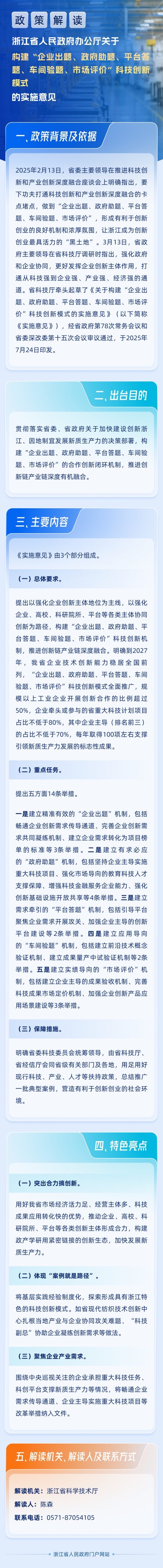 一图解读:浙江省人民政府办公厅关于构建“企业出题、政府助题、平台答题、车间验题、市场评价”科技创新模式的实施意见