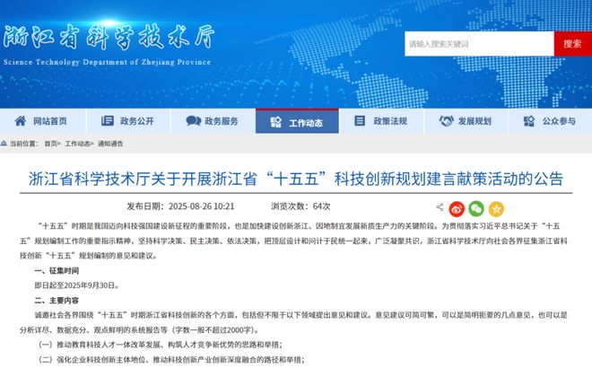 浙江省科技厅关于开展浙江省“十五五”科技创新规划建言献策活动的公告