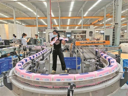 在崇左高新技术产业开发区,造纸企业智能化生产线正在输送包装好的纸品。广西云-广西日报记者管林华/摄