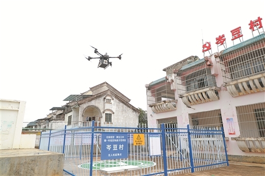自今年4月28日首飞以来,这一飞行每天准时运行两趟,已覆盖驮卢镇全部村落,成为村民们口中“会飞的快递员”。
