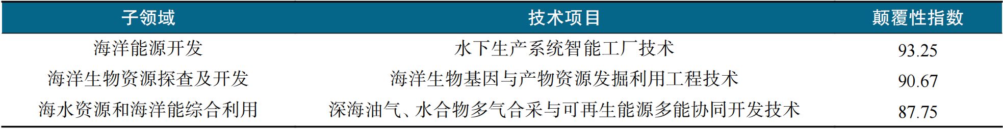表4 海洋领域颠覆性技术方向
