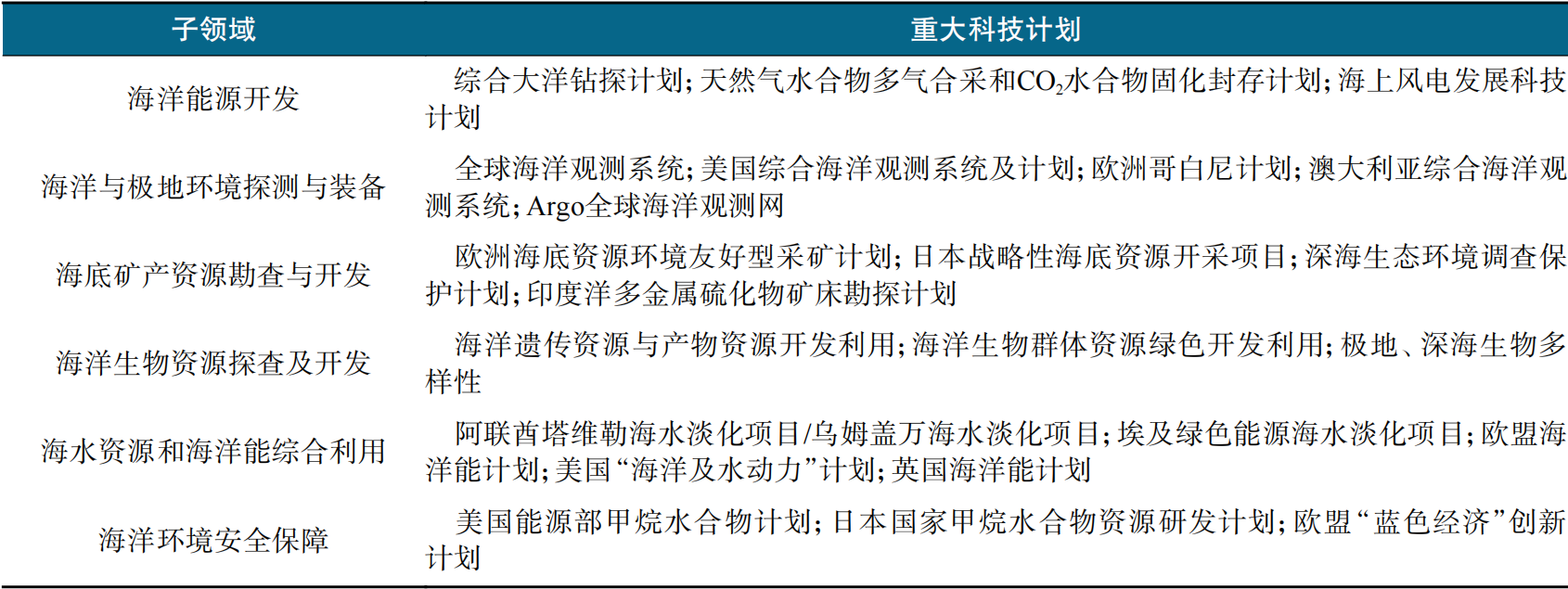 3)海洋矿产资源绿色开发工程。以海洋资源勘查及开发利用为主题,通过关键技术研发和示范系统建设,推进海洋新兴产业的商业化发展。