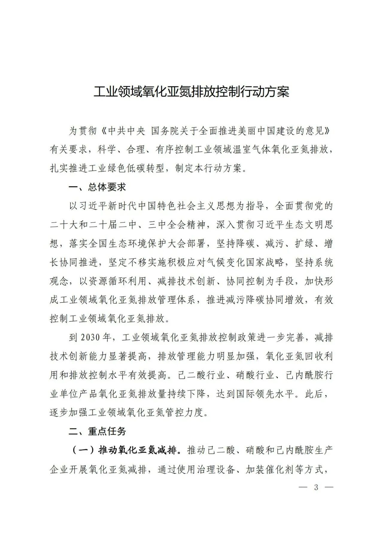 关于印发《工业领域氧化亚氮排放控制行动方案》的通知