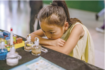 图④: 全国科普月期间,公众在中国科技馆科普展台参观打卡。季春红 摄