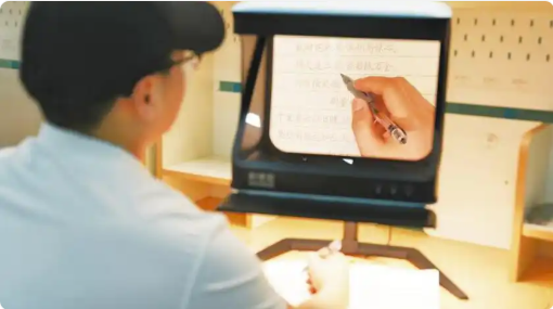 走进合肥耐德佳二楼展示厅,一台离焦读写台引人驻足:书本放在台面上,透过屏幕,内容便以3~8米“远望距离”呈现。