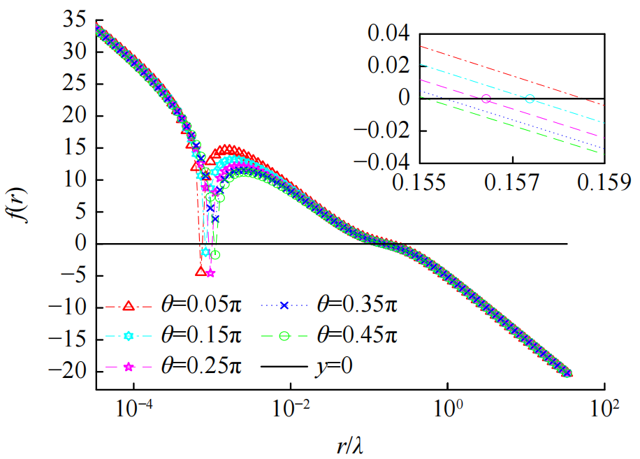 将f(r)=0作为磁感应边界的范围,在该范围内,磁感应能量占据主导;超出此范围,则电磁波通信更具优势。通过牛顿迭代法求解非线性方程,得到包含空间角的磁感应边界表达式为