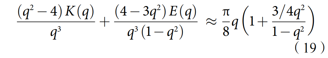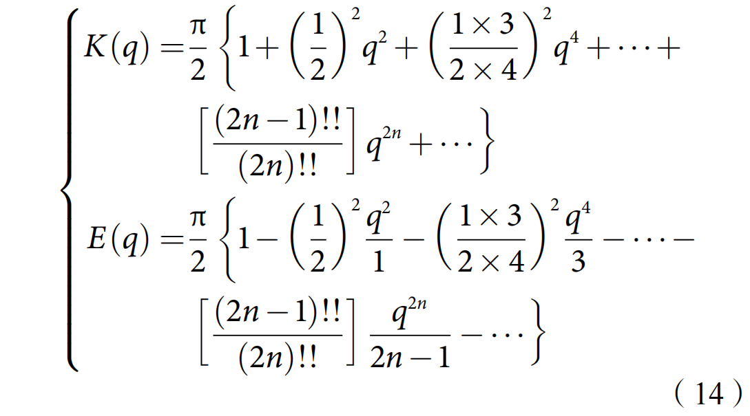 由于式(7)中第2项积分为0,仅需计算第1项的结果。因此,可将结果表示为第1类完全椭圆积分K(q)和第2类完全椭圆积分E(q)的组合