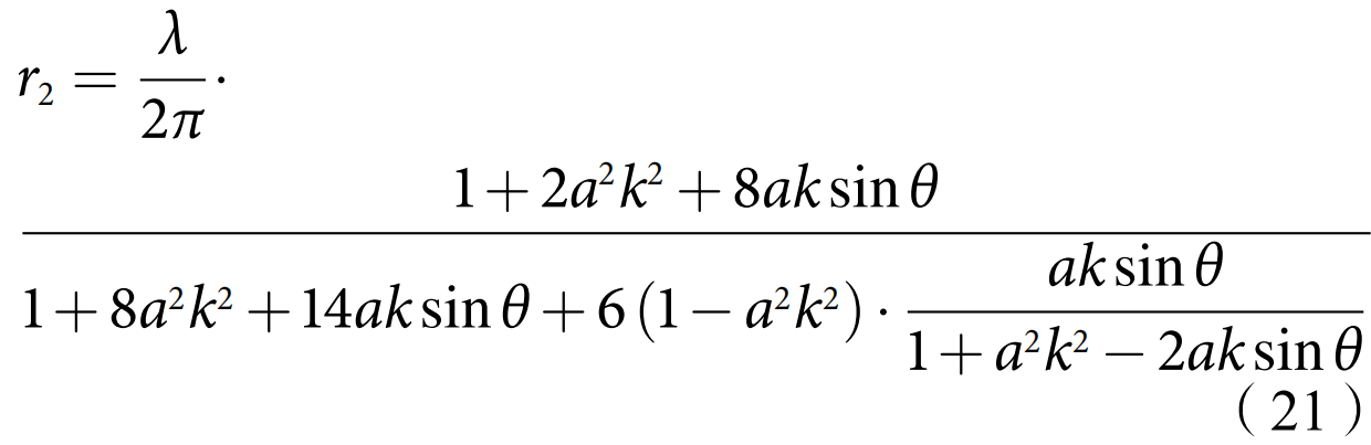 需要注意,式(17)可以表示为弧度距离项与修订因子项的乘积,其中修订因子项g(a,k,θ)=综合考虑薄环形天线的尺寸、形状和空间距离对边界的影响。结合自由空间中波长λ与波数k的关系(λ=2π/k),且在最大化磁感应边界条件下方位角θ=0,可得