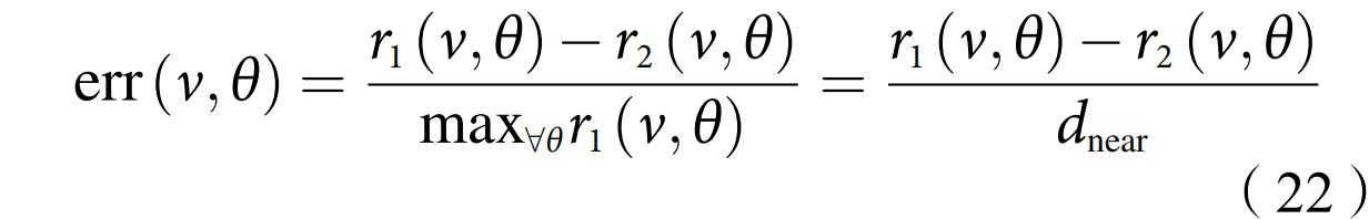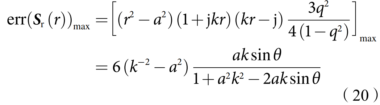 err(·)max表示在r=dnear条件下取最大误差项并计算其最大误差值作为累积误差最大值。考虑到式(20)为正实数,计算误差只对坡印亭矢量实部产生影响。代入式(17)的分母中,得到引入级数高阶项的磁感应边界为