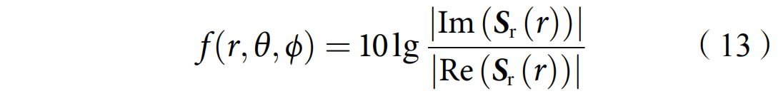 式中,Sr(r)=0.5×Eϕ×H∗θ表示沿任意径向的复坡印亭矢量,其中H∗θ表示θ方向的磁场强度取共轭。|·|表示取绝对值运算;Re(·)和Im(·)分别表示对复数取实部与取虚部运算。复坡印亭矢量的虚部表示感应功率,实部表示辐射功率。